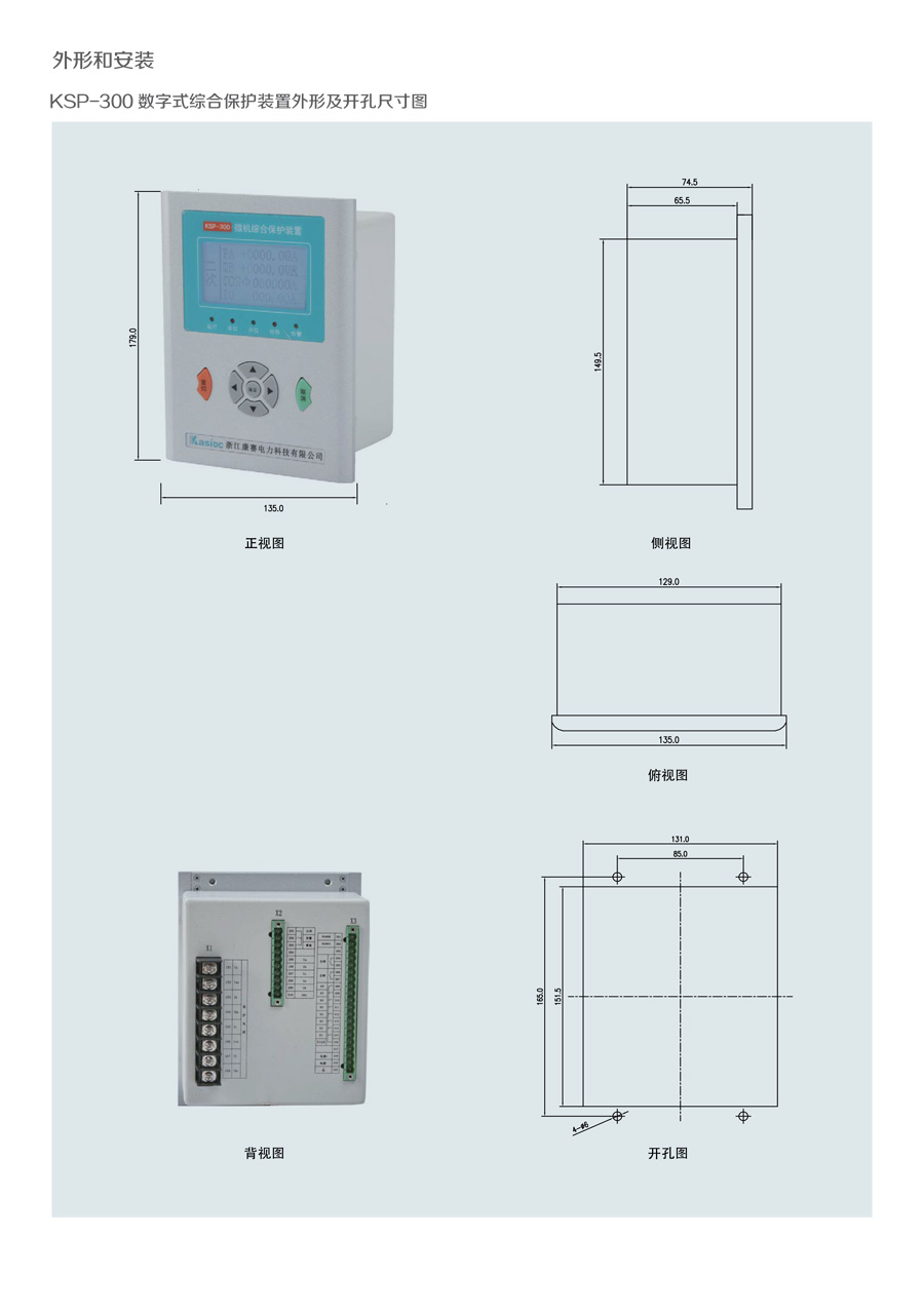 KSP-300 數(shù)字式綜合保護(hù)裝置是我公司為適應(yīng)我國電氣成套事業(yè) 發(fā) 展的需要,積累多年電力自動(dòng)化產(chǎn)品開發(fā)經(jīng)驗(yàn),運(yùn)用新技術(shù)、新工 藝 而推出的一款經(jīng)濟(jì)型綜合保護(hù)裝置。裝置結(jié)構(gòu)設(shè)計(jì)緊湊、體積小 巧,交 直流電源通用,可滿足 10KV 及以下電壓等級(jí)進(jìn)出線、廠用 變等保護(hù)測(cè) 控功能。